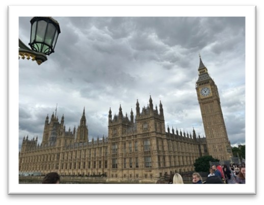 Tag 5 – Donnerstag: Am letzten Tag fuhren wir in die Hauptstadt London. Nach einer Bootsfahrt des Unternehmens Uber boats vom Busparkplatz bis in die Innenstadt, wo wir unter anderem die wichtigsten Sehenswürdigkeiten wie den Tower, die Tower Bridge, das London Eye oder das Globe Theatre sahen. Endstation war an den Houses of Parliament, wo wir gemeinsam die umliegenden Sehenswürdigkeiten besuchten um dann über die Downng Street Number 10 und die Horse Guards zum Trafalgar Square liefen. Von dort aus durften wir die Stadt selbst entdecken. Einige von uns nutzten die Zeit für Shopping, andere erkundeten Museen oder besuchten den Buckingham Palace. Am Abend hieß es Abschied nehmen von England. Dann ging es mit dem Boot zurück zur O2 Arena, wo der Bus auf uns wartete. Müde aber mit vielen neuen Erfahrungen, Bildern und Souvenirs im Gepäck traten wir noch am Abend die Heimreise zurück nach Weißenhorn an.