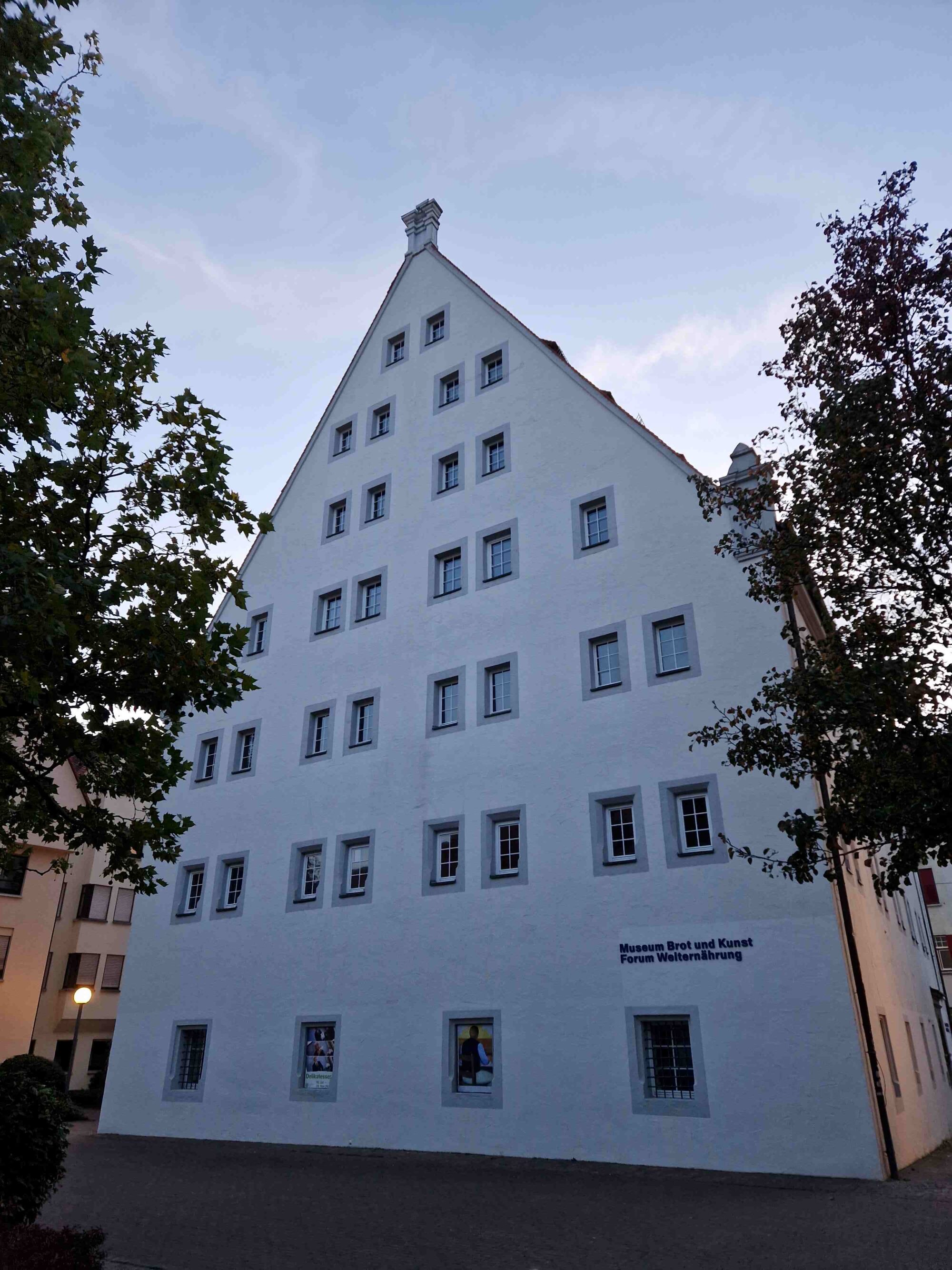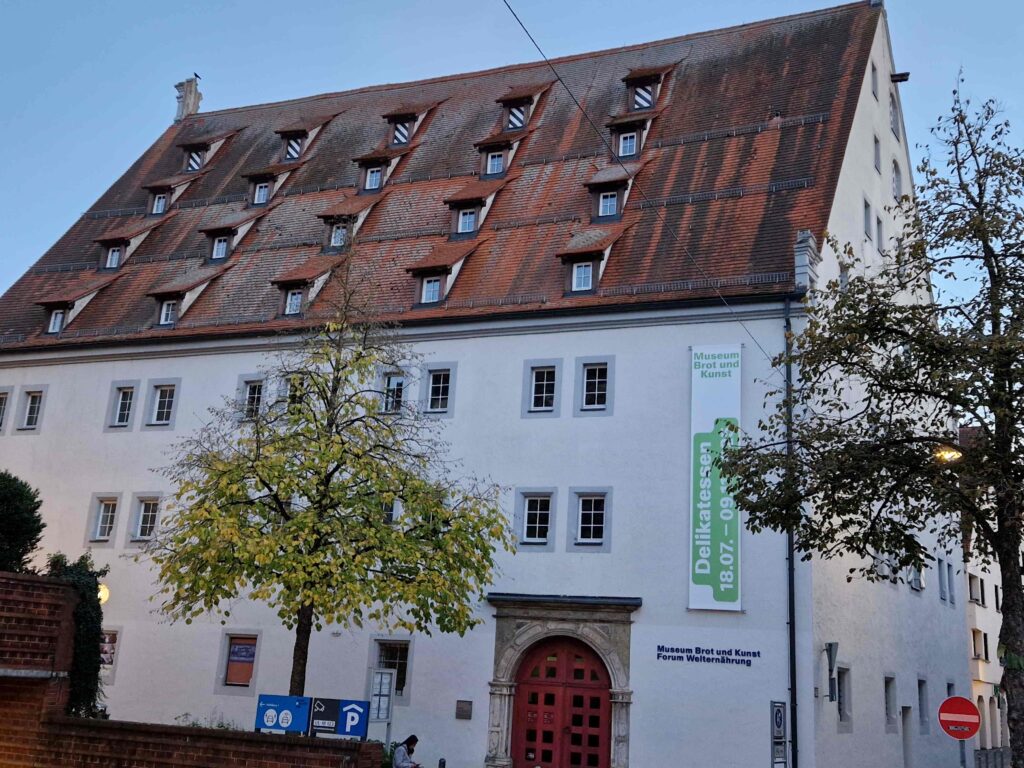 Nach einem etwas ruckeligen Start aufgrund eines vermeintlich ausfallenden Zuges fuhren wir dennoch gut gelaunt am 15.10.2025 einen Zug eher nach Ulm. Bei strahlendem Sonnenschein besuchten wir zunächst den Ulmer Wochenmarkt, wo es die Möglichkeit gab viele regionale Produkte, unter anderem auch Obst und Gemüse zu erwerben oder ein zweites Frühstück zu sich zu nehmen. Anschließend machten wir einen kleinen Spaziergang durch das Fischerviertel und zum Schiefen Haus. Von dort aus ging es in Richtung Brotmuseum. Doch bevor wir ankamen, legten wir noch eine kleine Pause ein, um den Begriff Nachhaltigkeit näher zu definieren und anhand von Beispielen zu erklären. Anschließend wurden wir im Museum Brot und Kunst bereits erwartet. Dort teilten wir uns in zwei Gruppen auf, von denen die eine Hälfte eine Führung zum Thema „Brot als Alltags-, Kunst und Kulturprodukt“ machte, während die anderen sich mit dem Thema „Welternährung und den damit verbundenen globalen Herausforderungen“ beschäftigte. Die Führung war sehr informativ und regte zum Nachdenken an. Einerseits wurden wir auf den starken Zusammenhang zwischen Klima und dem Anbau von Obst, Getreide und Gemüse am Beispiel der Hungersnot 1816 hingewiesen. Andererseits wurde erläutert, welchen Beitrag die Chemie leistete, um besser auf solche Ereignisse eingestellt zu sein, wie z.B. das Herstellen von Düngern oder das Haltbarmachen von Lebensmitteln mittels Zucker, was aber auch Schattenseiten birgt. Ebenso wurde gezeigt, dass in einigen Ländern eher industriell stark weiterverarbeitete Produkte konsumiert werden, während in anderen Ländern eher das Naturprodukt im Mittelpunkt steht. Bei einem interaktiven Puzzle haben wir gesehen, dass stark verarbeitete Produkte viel mehr Wasser benötigen als der Anbau von Obst und Gemüse. Schließlich haben wir festgestellt, dass die Nahrungsmittel auf der Welt sehr ungleich verteilt sind, was ein Wettrennen um die Ressourcen zur Folge haben kann. Zum Schluss haben wir in einer Videoinstallation den Film „Afrika 2063“ gesehen, der uns verdeutlichte welches Potential der afrikanische Kontinent für die zukünftige Landwirtschaft bietet, sofern die afrikanischen Politiker die richtigen Weichen stellen.