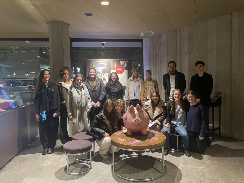 Würdest du das Leben deines Sohnes opfern, um dein eigenes zu retten? Ich glaube, keiner von uns würde gerne in der Haut des Idomeneos stecken, dem genau diese Entscheidung bevorstand. Aber jetzt erstmal ganz von vorne… Wir, der Begabungsstützpunkt für Kammermusik und das Leistungsfach Musik, besuchten am 22. Oktober im Theater in Ulm die Oper Idomeneo von Wolfgang Amadeus Mozart. Zunächst versammelten wir uns um 19 Uhr im Foyer des Theaters. Dort vertieften wir uns noch vor der Aufführung in das Programmheft, um uns bestmöglich in die Lage der einzelnen Figuren hineinversetzen zu können. Im Zentrum steht der Kriegsheimkehrer Idomeneo, welcher bei seiner Rückkehr in einen Sturm gerät und dem Meeresgott Poseidon, als Gegenleistung für sein Überleben verspricht, ihm den ersten Menschen zu opfern, den er an Land antrifft. Unglücklicherweise ist dies aber sein Sohn Idamante. Auch Idamante spielt eine wichtige Rolle in dem ganzen Geschehen. Er hat zwei Verehrerinnen: Die Tochter des Agamemnon, Elettra (König von Argos), und die trojanische Prinzessin Ilia, Tochter des Königs Priamos und ehemalige Kriegsgefangene auf Kreta. Beide schwärmen so sehr von Idamante und wollen um jeden Preis verhindern, dass ihm etwas zustößt. Doch konnte Idamantes Leben wirklich gerettet werden? Auch für uns blieb es bis zum Ende spannend, und wir konnten die Oper trotz italienischer Gesangssprache mühelos verstehen. Manchmal gibt es Momente in der Musikgeschichte, die man als Musiker am liebsten selbst miterleben möchte. Ein solches Gefühl hatten auch wir nach der Aufführung unseres Patenorchesters aus Ulm, denn diese Darbietung gefiel uns so sehr, dass wir am liebsten die Fähigkeit zur Zeitreise besessen hätten, um auch die Uraufführung am 29. Januar 1781 im Münchner Residenztheater selbst mitzuerleben. Besonders faszinierte uns die Kombination aus Mozarts Musik, welche zeitlos ist und der modernen Inszinierung. Uach war es eine große Freude, unser Patenorchester, also unsere Dozenten und Vorbilder, die mit uns proben und uns auf unsere Konzerte vorbereiten, auf der Bühne und im Orchester wieder einmal live erleben zu dürfen.