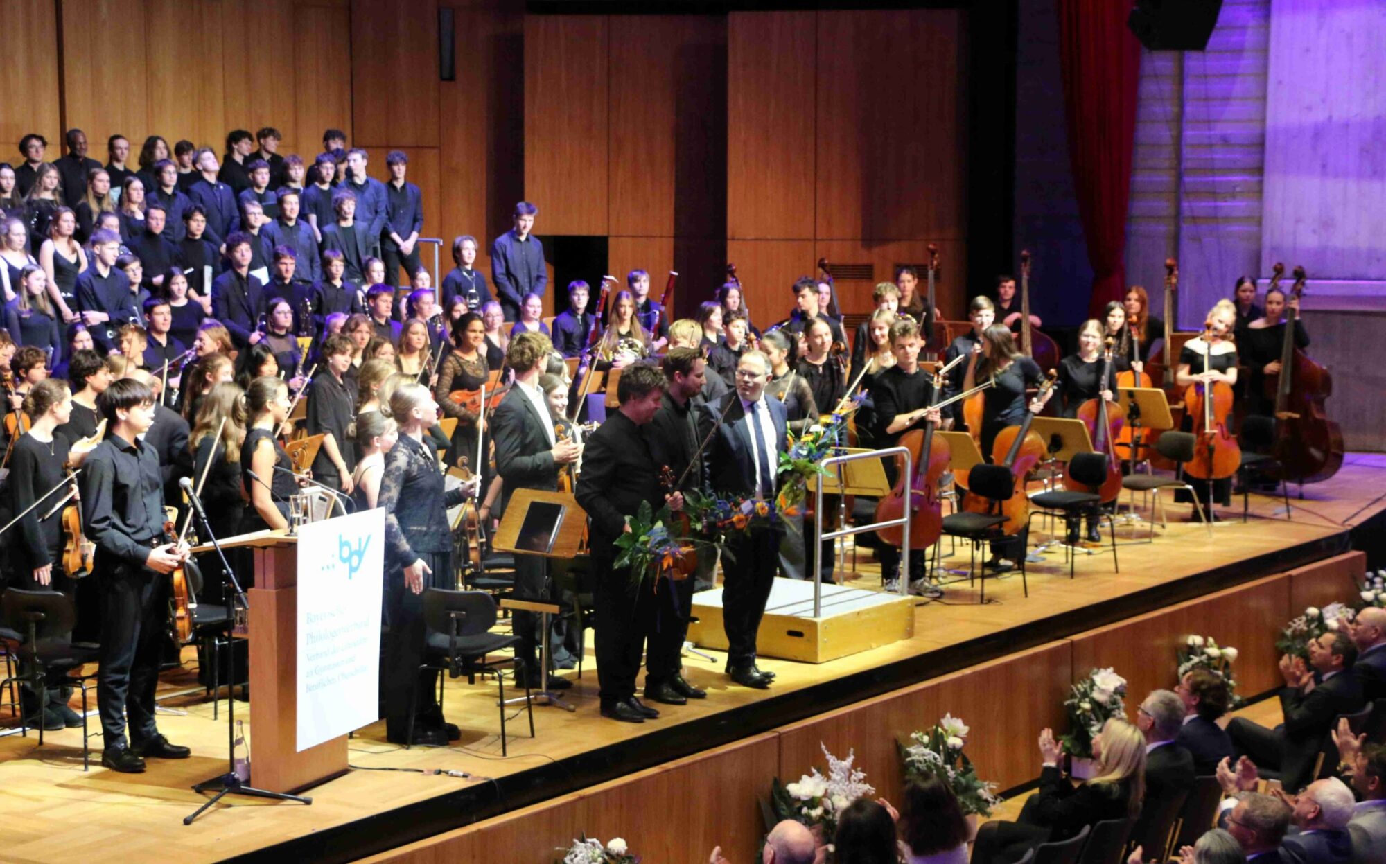 Das Orchester und der große Chor unserer Schule gestaltete mit ihren Partnern des Gymnasiums bei St. Stephan den Festakt des Philologenverbands, an dem auch Kultusministerin Anna Stolz teilnahm. Mit „O Fortuna“ aus „Carmina Burana“ begeisterten die 140 Schülerinnen und Schüler, unter der Leitung von Tobias Keck, die Delegierten aus ganz Bayern am Freitag, 28.11.2025. Der große Saal im Kongress am Park in Augsburg bot einen tollen Klangraum, um noch einmal ein Stück aus „Carmina Burana“ zu präsentieren und an die erfolgreichen Konzerte im Sommer zu erinnern. Die Kooperation der beiden Gymnasien hinterließ auch bei dieser Veranstaltung einen bleibenden Eindruck.