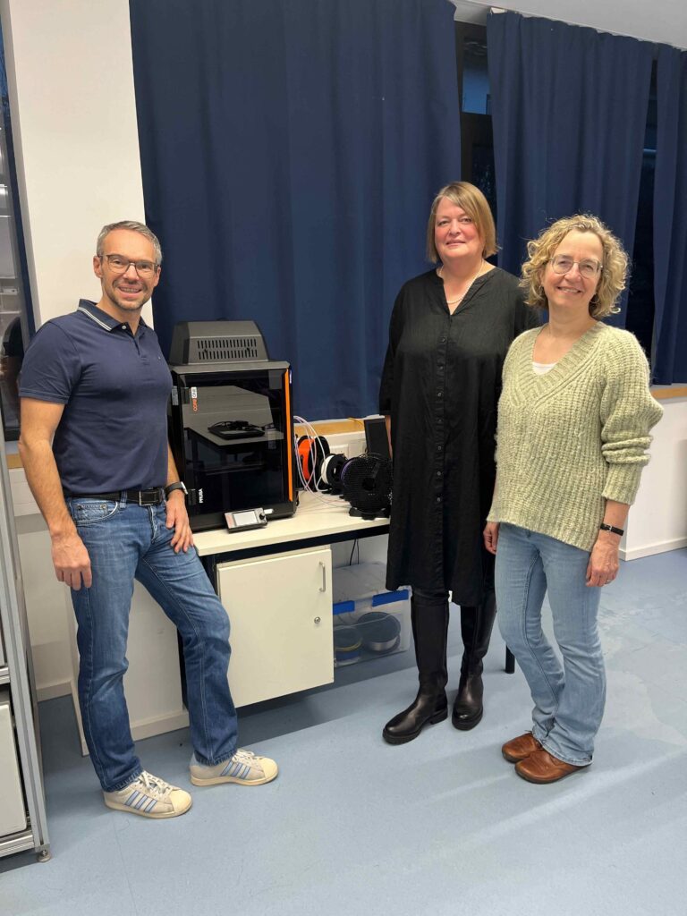 Die ersten Projekte sind schon gestartet, wie z.B. der Bau eines Interferometers für die Physik, mit dem man Wellenüberlagerungen messen kann oder auch das Entwerfen und Drucken kleiner Modelle im Chemie-, Biologie – oder Geografieunterricht.