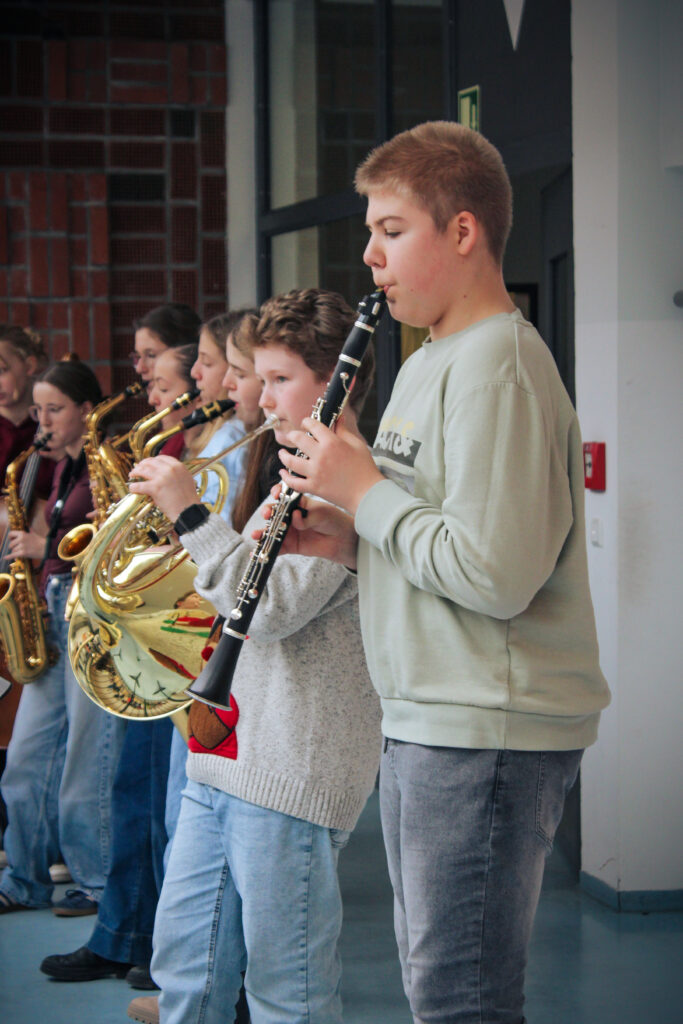 In der Pause erfüllten festliche Weihnachtslieder die Aula: Schülerinnen und Schüler musizierten gemeinsam mit ihren Musiklehrkräften und verbreiteten eine stimmungsvolle Atmosphäre im ganzen Schulhaus. Inmitten der oft hektischen Vorweihnachtszeit bot dieser musikalische Moment eine wohltuende kleine Auszeit für die gesamte Schulgemeinschaft.