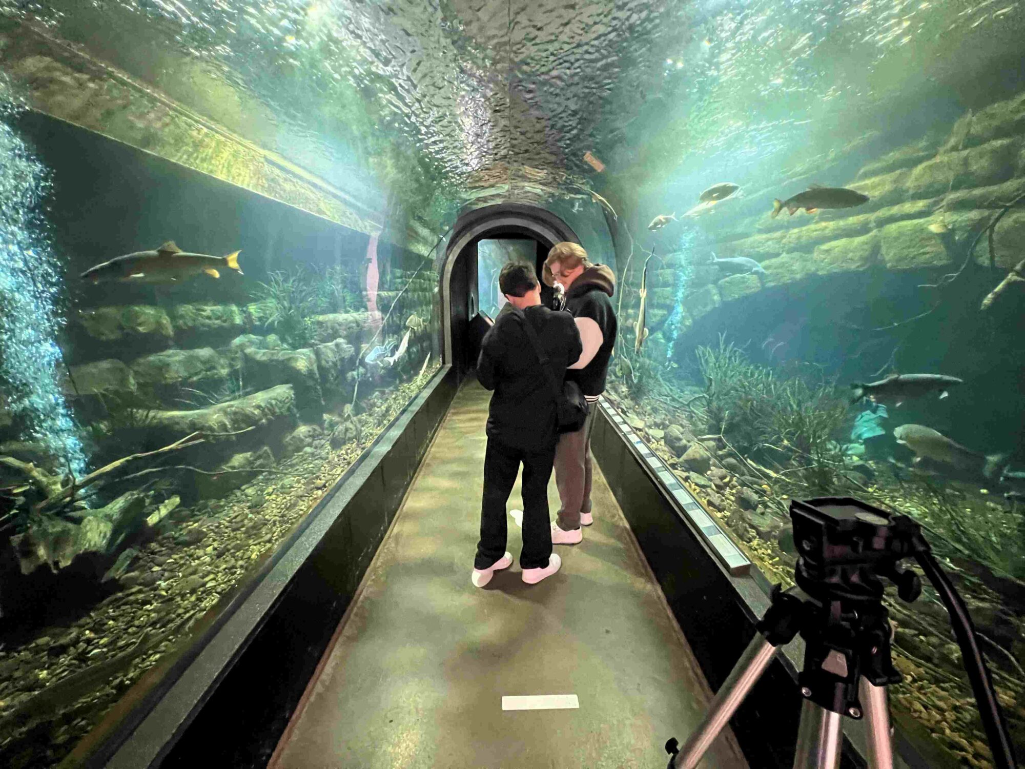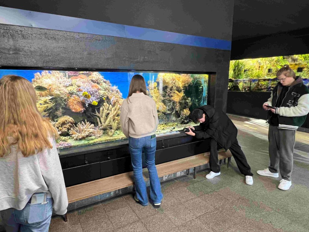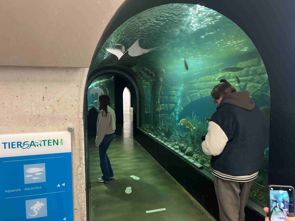 Die Foto-& Film-AG des Nikolaus-Kopernikus-Gymnasiums dreht derzeit ihren neuen Film „Ich bin allein“. Für eine Szene ging es in den Unterwassertunnel des Tiergartens Ulm, weitere Aufnahmen entstanden vor farbenfrohen Korallen in den Aquarien.